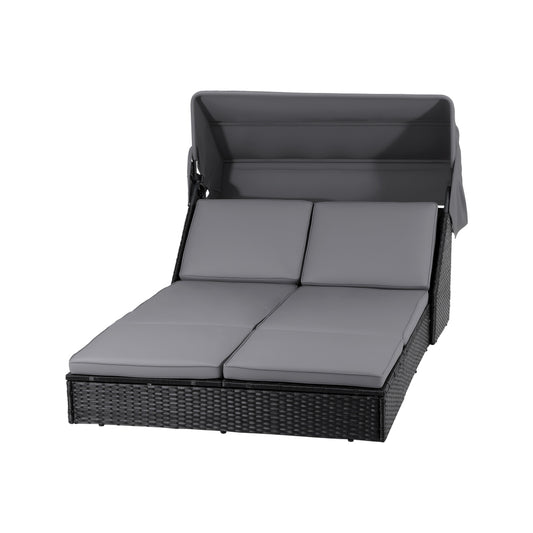 Gardeon Outdoor Day Bed Sun Lounge Setting Wicker Lounger Patio Furniture Grey