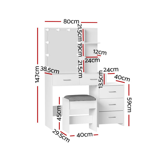 Artiss Dressing Table Set Stool 10 Led Bulbs White Dulcea