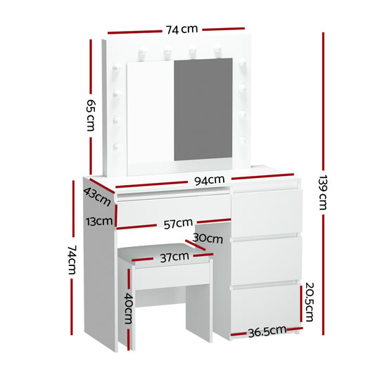 Artiss Dressing Table Vanity Desk Set Stool 10 Led Bulbs White