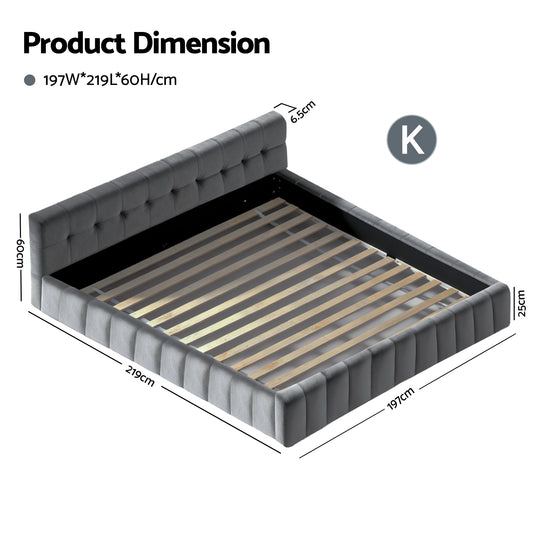 Artiss King Size Bed Frame Plush Soft Headboard Velvet Platform Base for Modern Bedrooms Grey