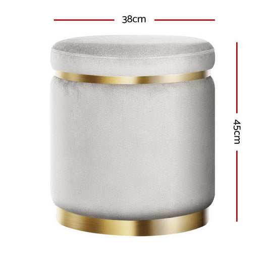 Artiss Ottoman Storage Foot Stool Round Velvet Grey