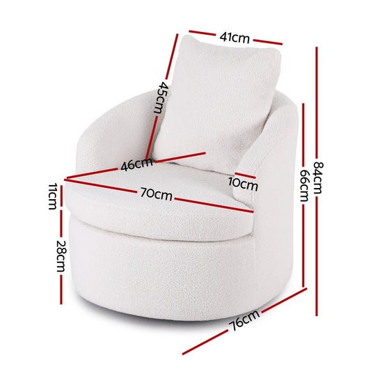 Artiss Round Swivel Armchair Extra Pillow White