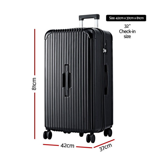 Wanderlite 32" Trunk Luggage Suitcase Travel 5 Wheels Type-C Port TSA Black