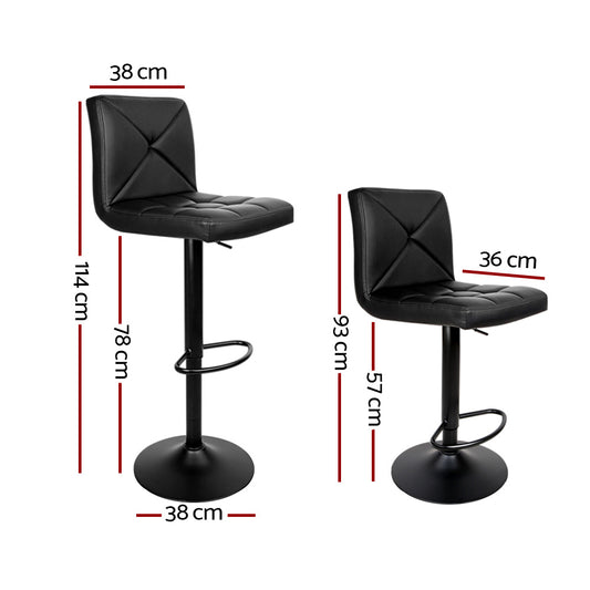 Artiss 2x Bar Stools Leather Padded Gas Lift Stool Black