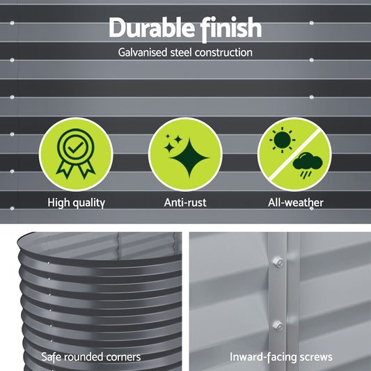 x2 Green Fingers Raised Garden Bed Kit Planter Oval Galvanised Steel 240cmX80cmX56cm