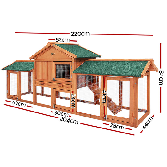 i.Pet Chicken Coop Rabbit Hutch 220cm x 44cm x 84cm Large Chicken Coop Run Wooden Outdoor Cage House