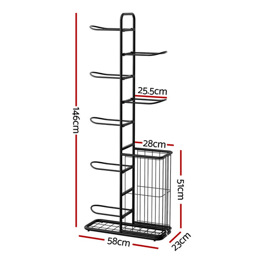 Everfit Ball Storage Rack Sports Equipment Organizer 7-Tier with Basket for Garage Gym Black