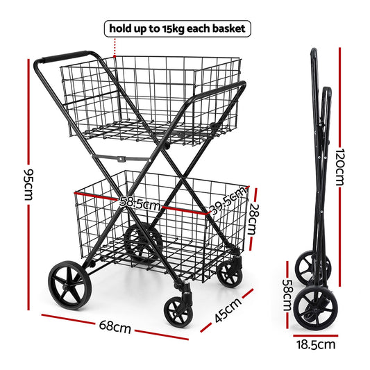 Gardeon Garden Cart Folding Trolley Camping Wagon Barrow Outdoor Beach Black