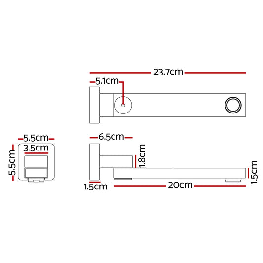 Cefito Bathroom Mixer Spout Wall Bath Tap Square Swivel Bathtub Black