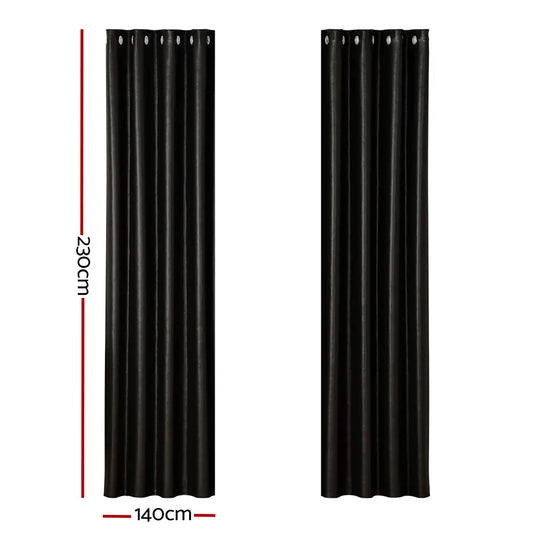 Artiss 2X Blockout Curtains Eyelet 240x230cm Black Shine
