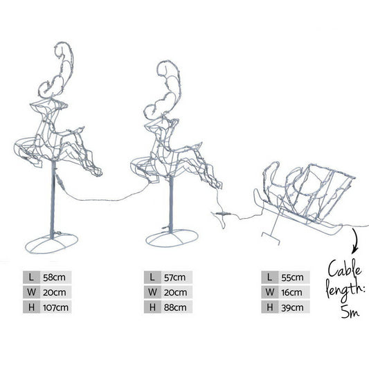 1X Christmas Lights Reindeer Sleigh 120 LED Decorations Jingle Jollys