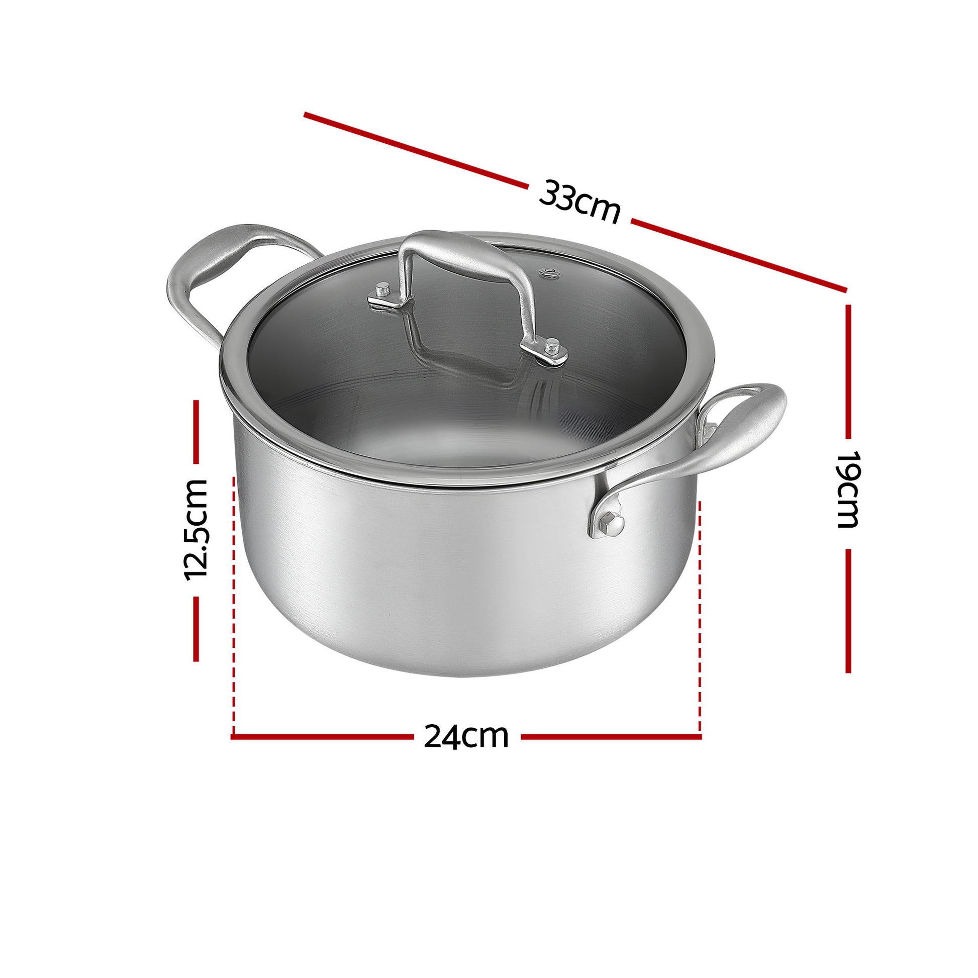 5-Star Chef 4.5L 24cm Stainless Steel Dutch Oven Pot with Lid and Stay-Cool Handle