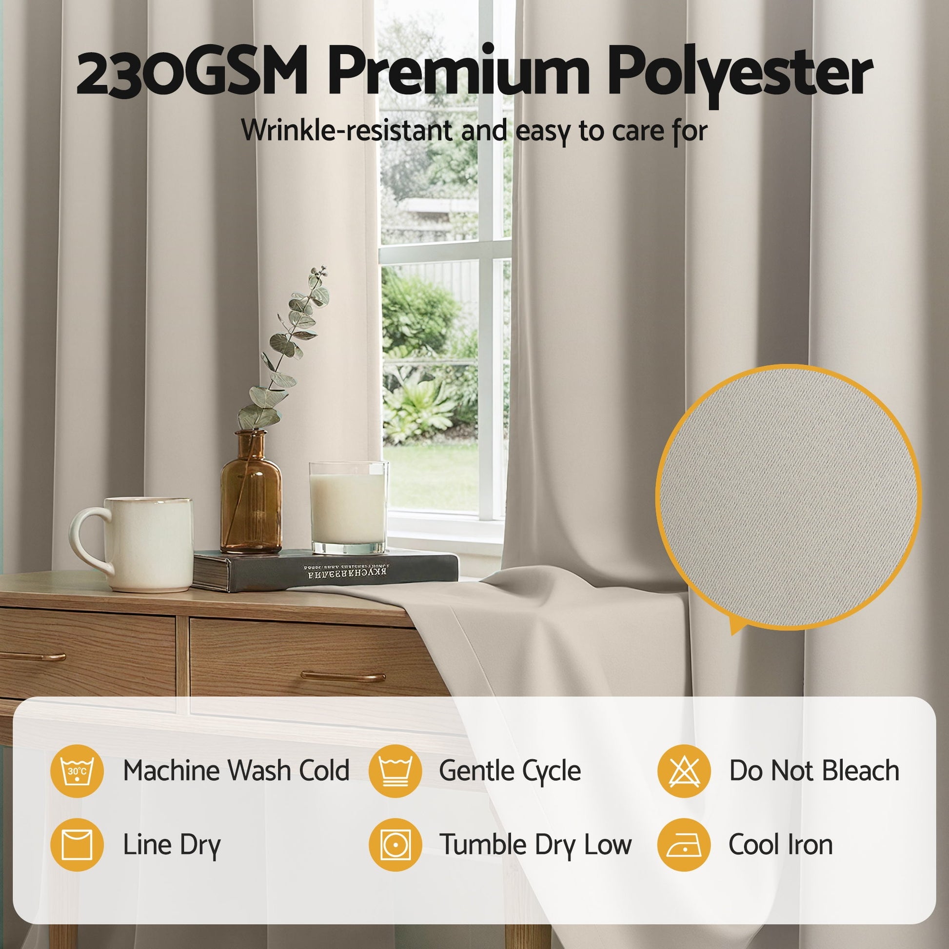 Artiss Blockout Curtains 2X 132x213cm Thermal Insulated Eyelet Drapes Beige