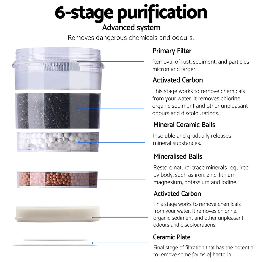 Always have access to cleaner and purer water with the Devanti Water Cooler. Designed for convenience, the compact water cooler can be used on any desktop or kitchen bench to dispense clear water anytime. A 7-stage filtration system ensures your water is always pure and healthy. It comes with dual hot and cold waterspouts and a hot-cold water on/off switch for easy use. Compressor cooling technology helps the cooler get your cold water to the perfect temperature, while a piping hot cup of tea can be poured from the hot waterspout on command. Safety is assured with a child-lock function to prevent children from tampering with the cooler as well as protection from over-current, overheating, electric shocks and drying up. The cooler also has a removable drip tray, a water guide plate for use with standard water bottles, and anti-slip feet to prevent movement. Enjoy a cool and clean glass of water at any time with the Devanti Water Cooler.