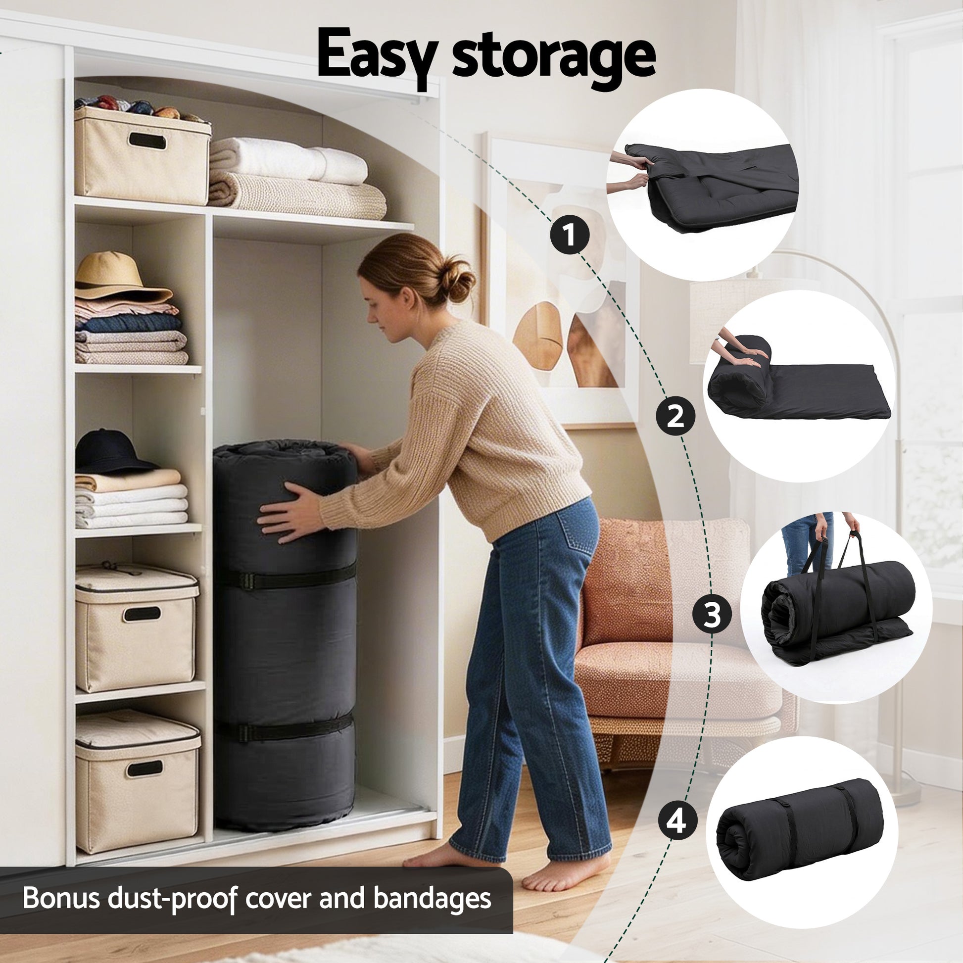 Most floor mattresses on the market suffer from being too thin or losing shape after a few uses. By incorporating a 25D high-density sponge layer, we ensure that our mattress supports your body weight evenly, correcting the curve of your spine and preventing back pain. The added convenience of a machine-washable cover means you never have to worry about spills or dust accumulation.